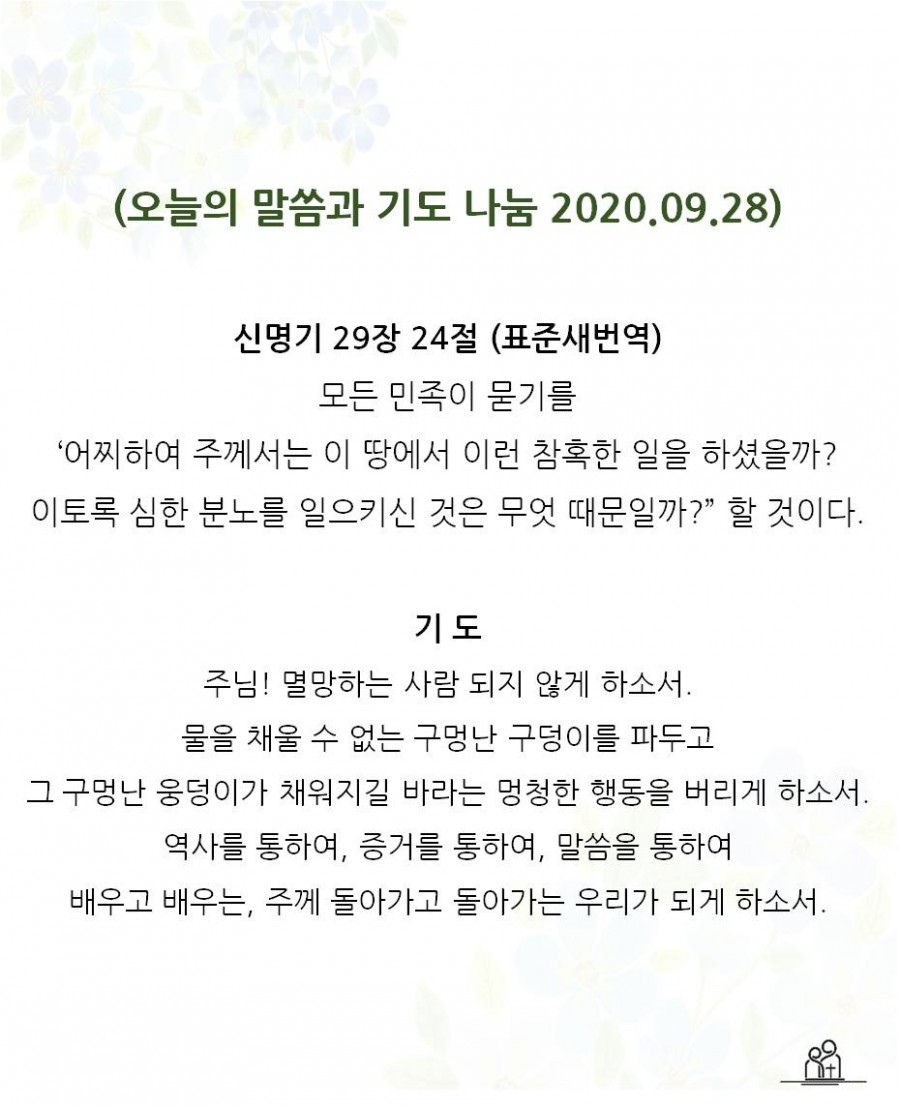 9월 28일(월) 오늘의 말씀과 기도 신명기 29장 24절 이 처참한 상황은 왜?