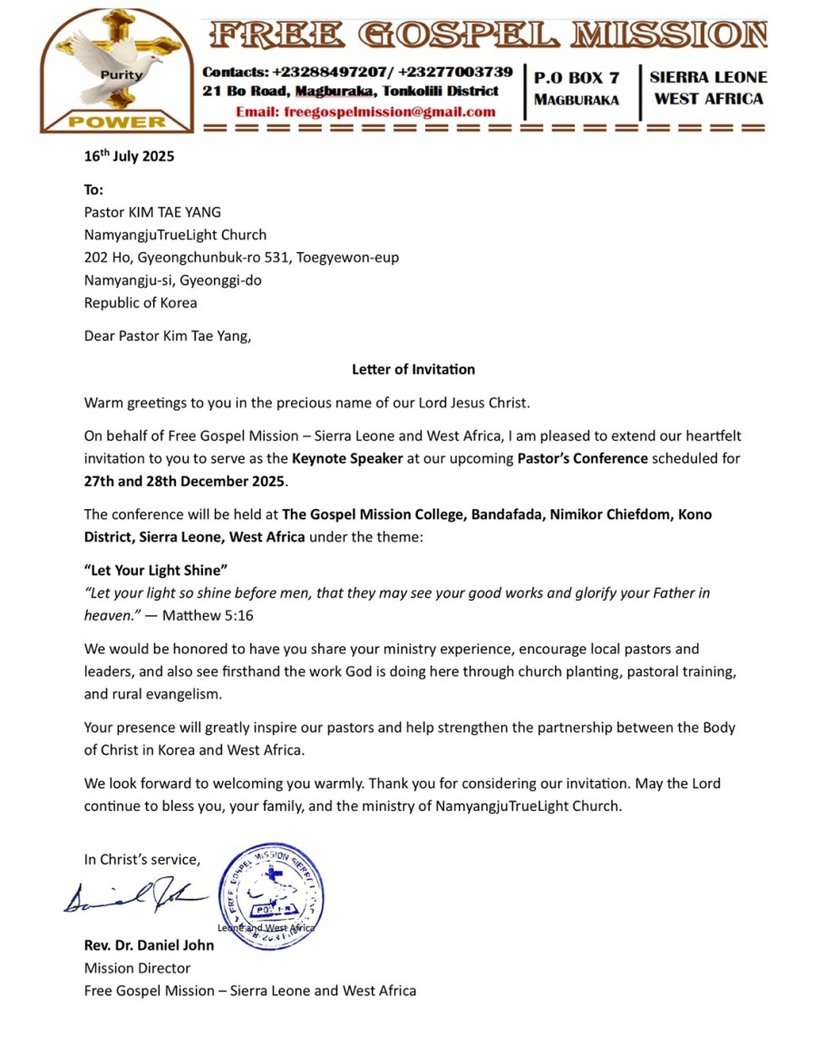시에라리온 교회의 초청으로 떠나는 시에라리온 선교 여정.